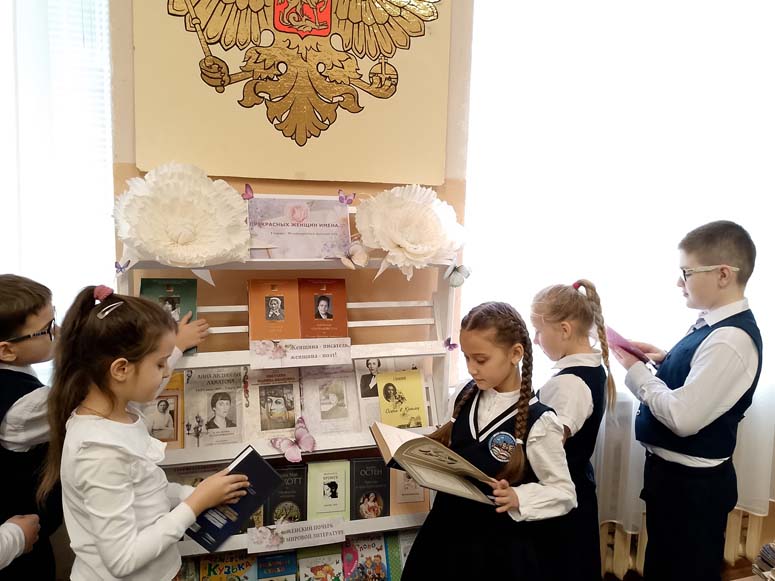 На презентации книжной выставки обучающиеся нашей школы-гимназии узнали много интересного о судьбах женщин русской и мировой литературы и с удовольствием вспомнили любимые стихотворения женщин-поэтов. А раздел экспозиции «Женщины, подарившие нам детство», посвящённый детским писательницам, порадовал ребят из начальных классов и вызвал ностальгию у девушек и юношей из старших классов.